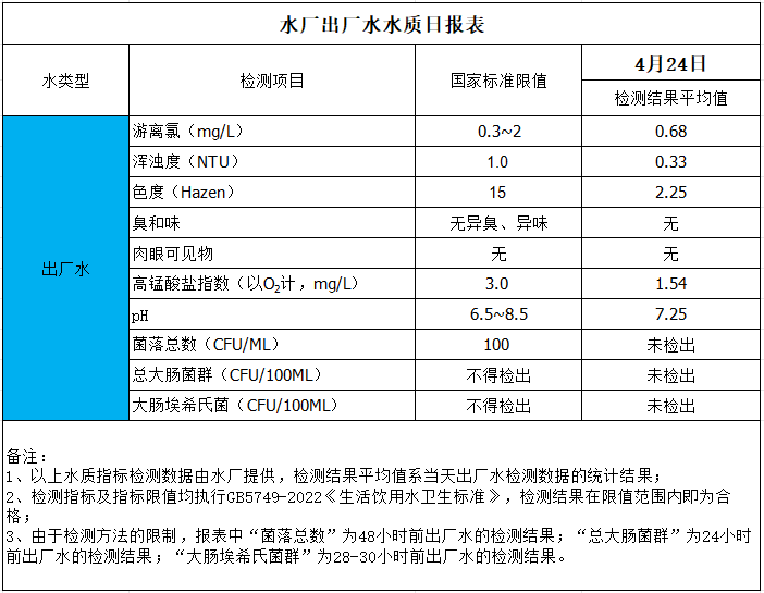 水廠出廠水水質(zhì)日?qǐng)?bào)表(2025-4-24)