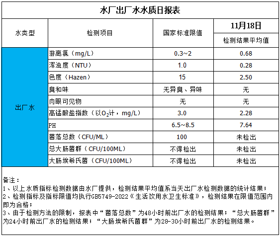 水廠出廠水水質(zhì)日報表(2025-11-18)