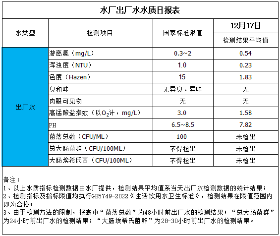 出廠水水質(zhì)日?qǐng)?bào)表(2025-12-17)