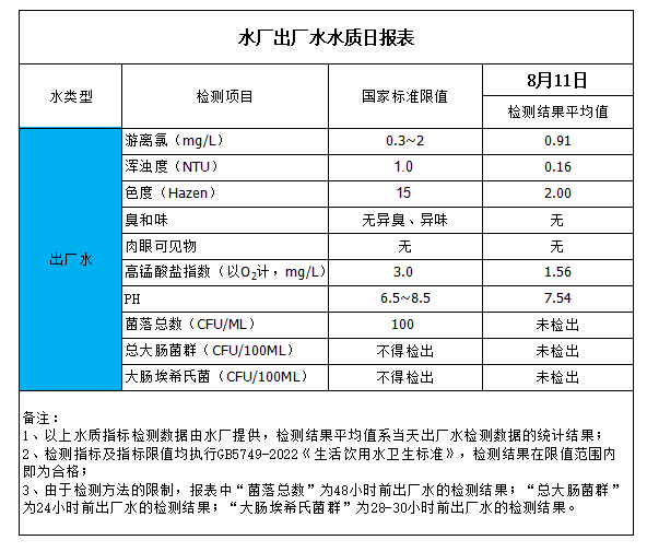 水廠出廠水水質(zhì)日報(bào)表(2023-8-11)