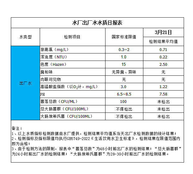 水廠出廠水水質(zhì)日報(bào)表(2024-3-21)