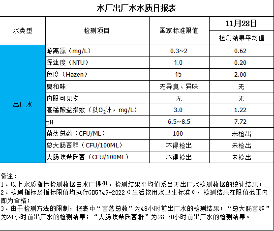 水廠出廠水水質(zhì)日報表(2024-11-28)