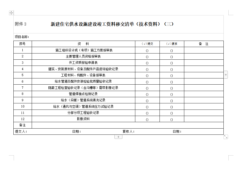 新建住宅項目用水申請